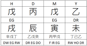 1. I’m a bing Chen with strong EG and a lot of DR. I have 1 hidden DW , RW in the dog hour. No FR. my month pillar is Ji Mao and year is Yi Mao. I understand that Bing doesn’t need friends. I’m confused as to which would be my best useful God. Would it be EG or DR?