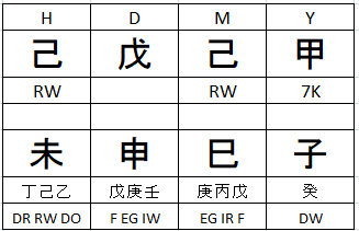 He is now going through the 27LP which is a very wealthy pillar for him with IW sitting on EG and being produced. This IW also allows the 申-巳 combination to transform into wealth element. Depending on the years, this will be a really wealthy pillar.
