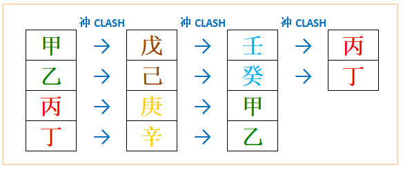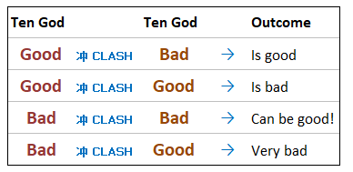 Depending on the favourability of the elements and the Ten Gods they represent, the clash can be good or bad: