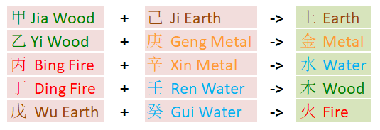 As we know there are 10 Stems and they can combine together if they are side-by-side or coming from an exterior pillar and if they find an inducer and the month branch doesn’t directly clash the produced element then the combination can transform or just produce another element to the chart if the transformation doesn’t take place. This element can influence the whole chart by enhancing, clashing or protecting other surrounding elements. Sometimes the produced element is the same as one of the two elements involved.